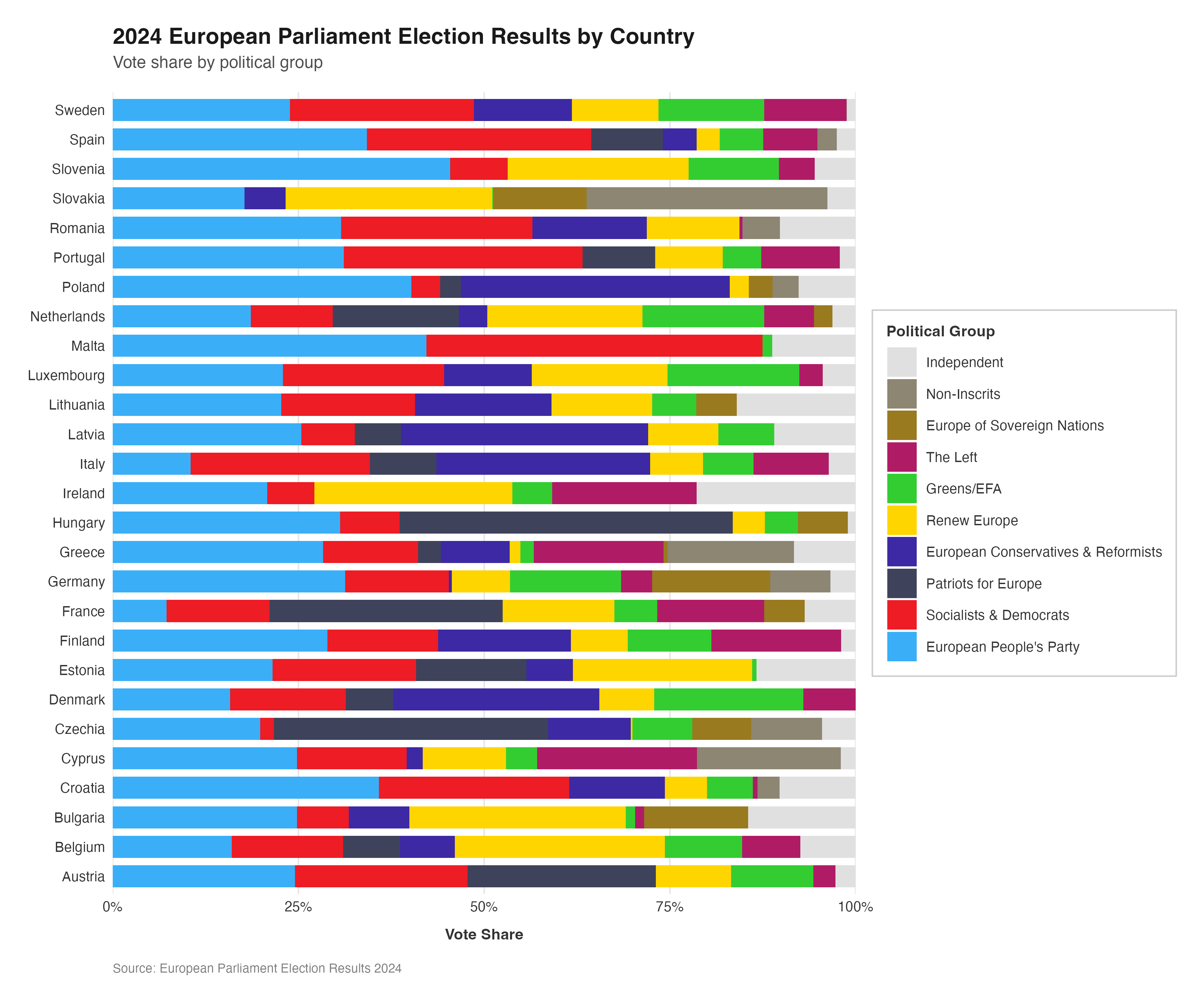 title = "2024 European Parliament Election Results by Party",