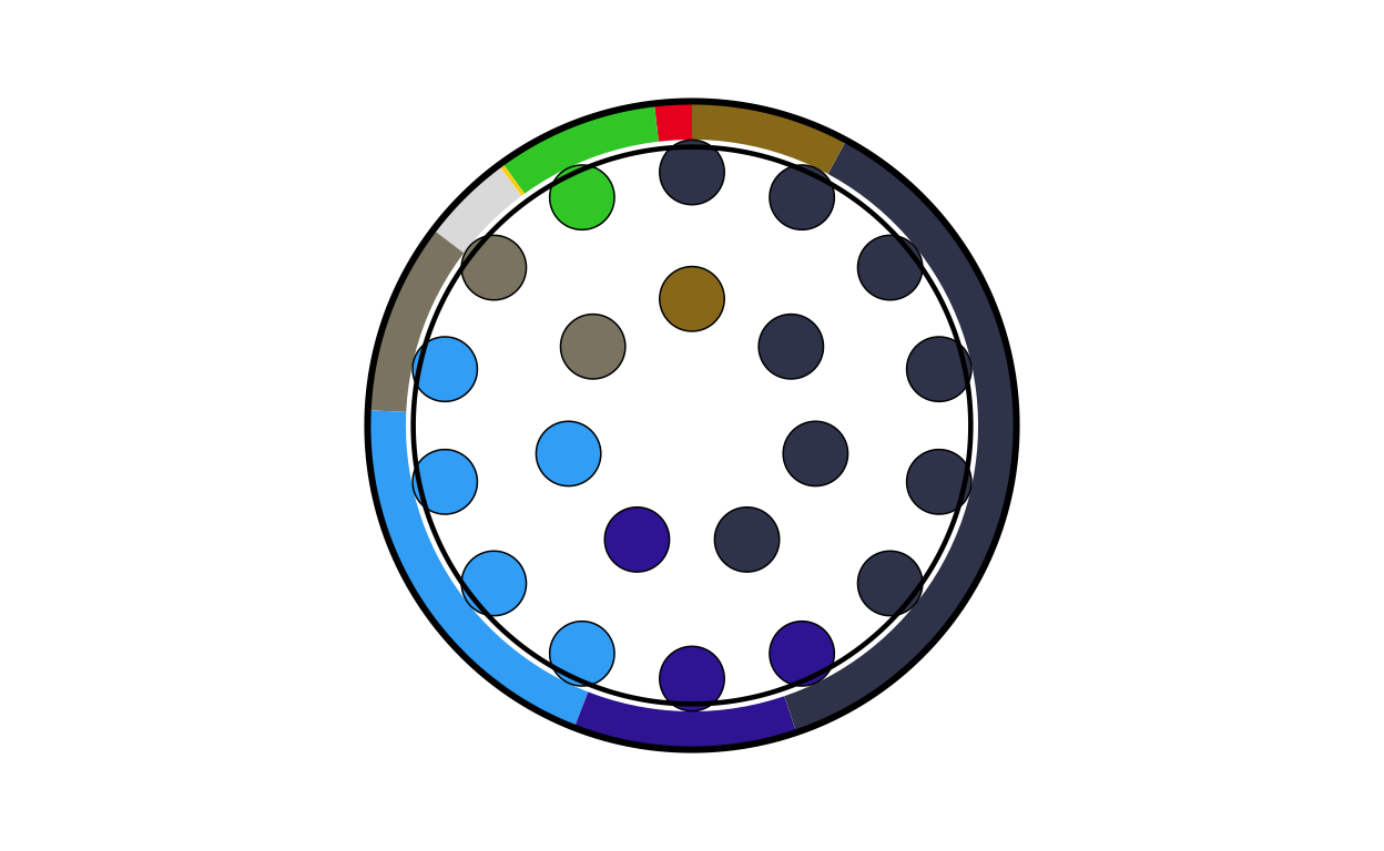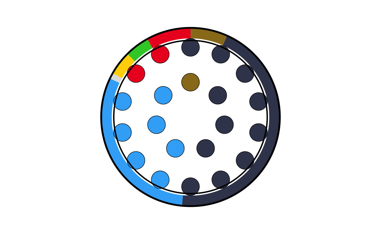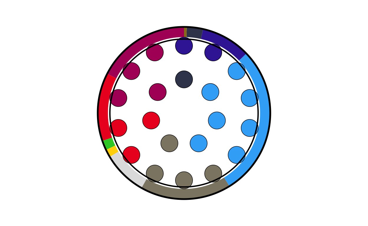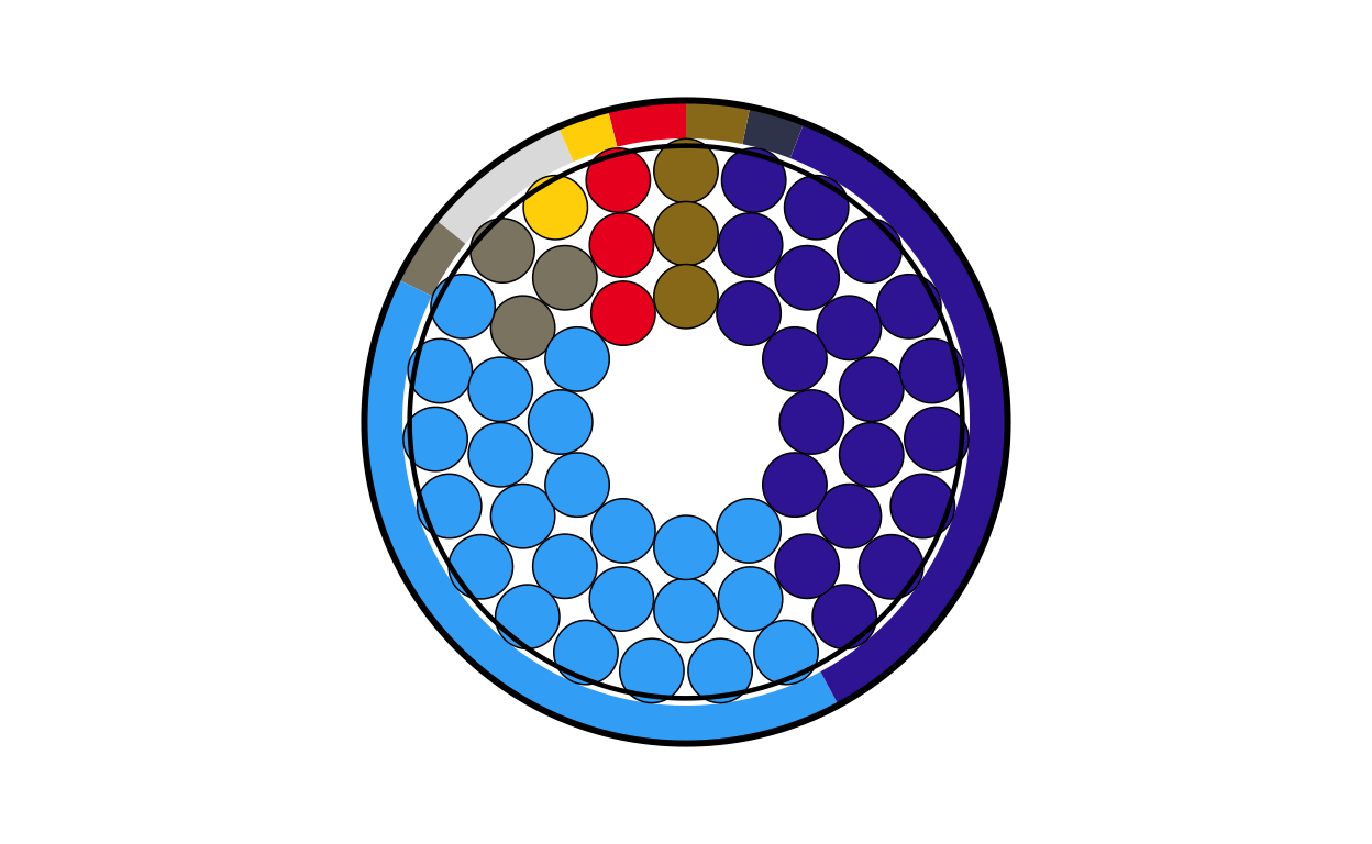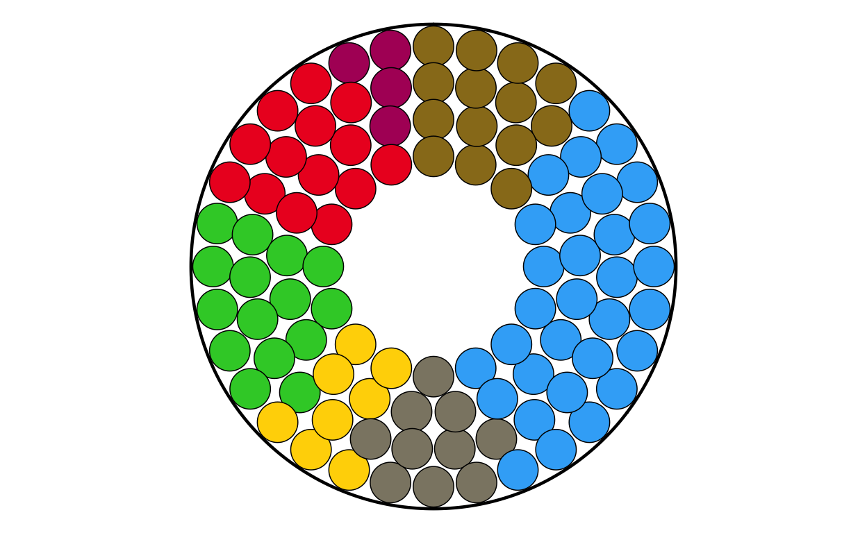 Parliament plots (also called hemicycle diagrams) are used to represent the seat distribution in legislative bodies. Traditionally, dots are arranged in a semicircle or horseshoe shape where each dot represents one seat/ representative and the colour of the dot represents the political party or group that the representative is affiliated with. In this case, the original plot uses 27 distinct, circular parliament plots to visualise the seat breakdown by European Parliament group in each of the EU member states.
